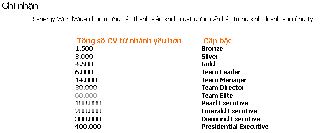 • Chỉ có Synergy Việt Nam được phép đào tạo những người tham gia chương trình tiếp thị trên mạng của nó.